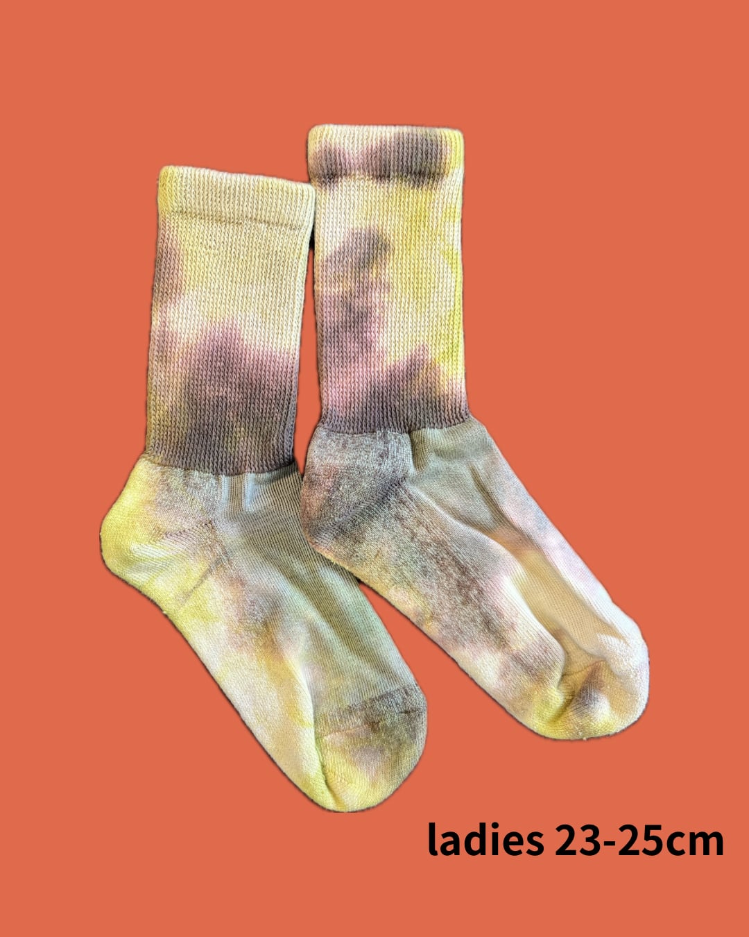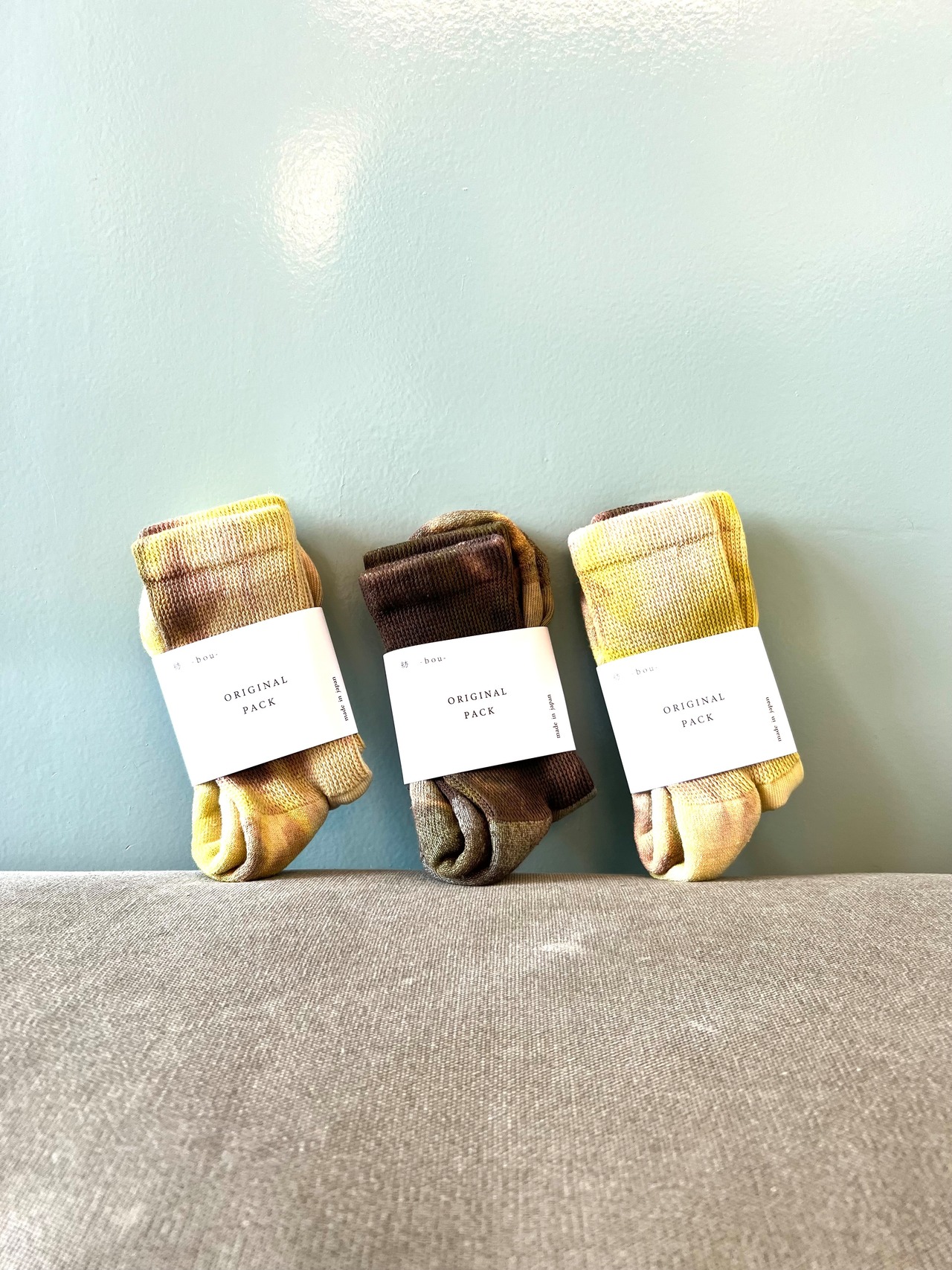 1足ごとに色の出方が異なり、元の生成りと絶妙なバランスで混ざり合ったグラデーションが魅力です。